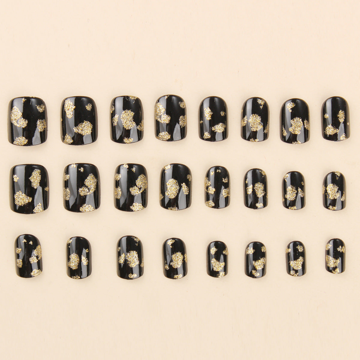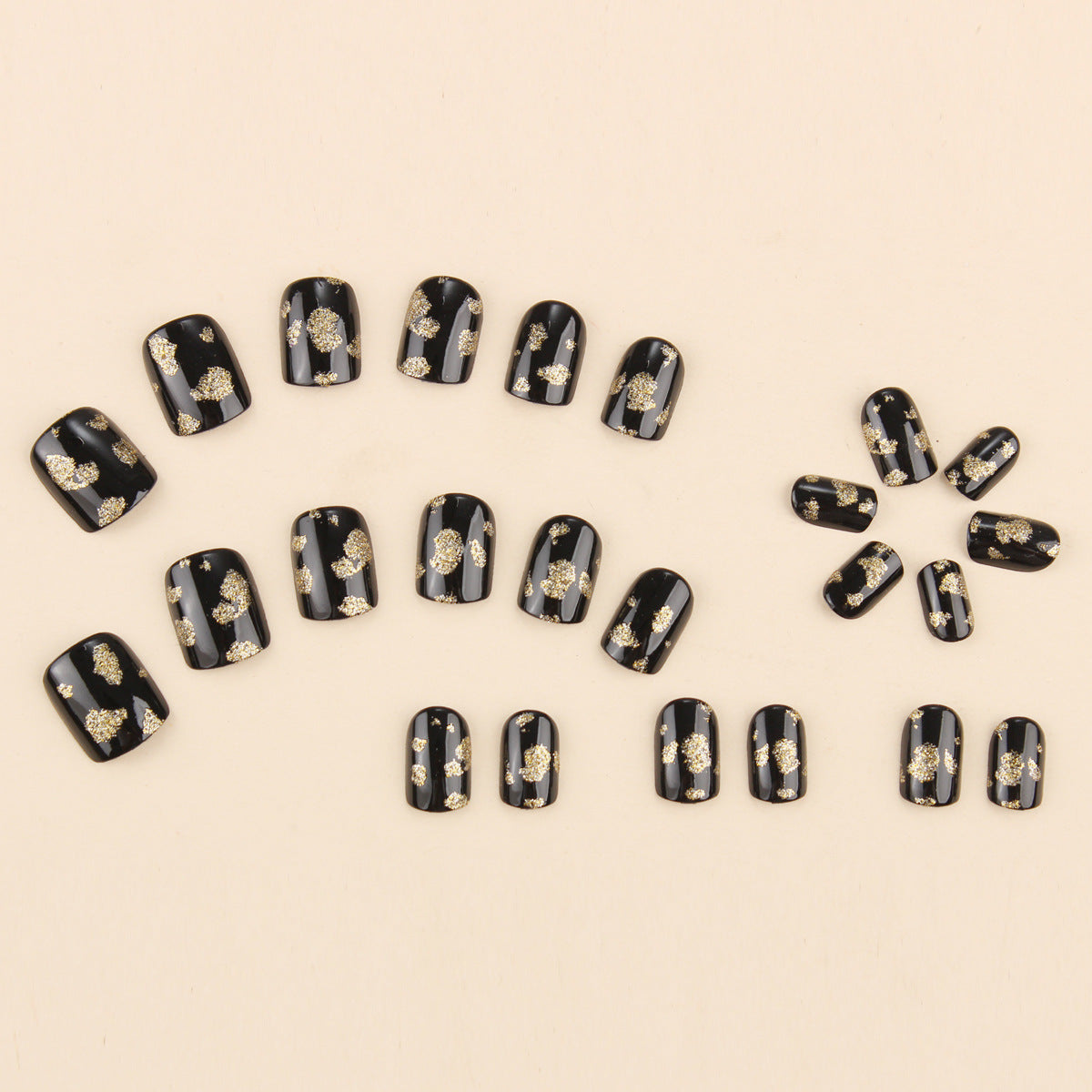- 12 sizes. 24 nails per box: Each set of 24 press-on nails. available in 12 different sizes. ensures a perfect custom fit. Plus. you'll get everything you need. including nail glue. adhesive tabs. a double-sided nail file. and a cuticle stick.