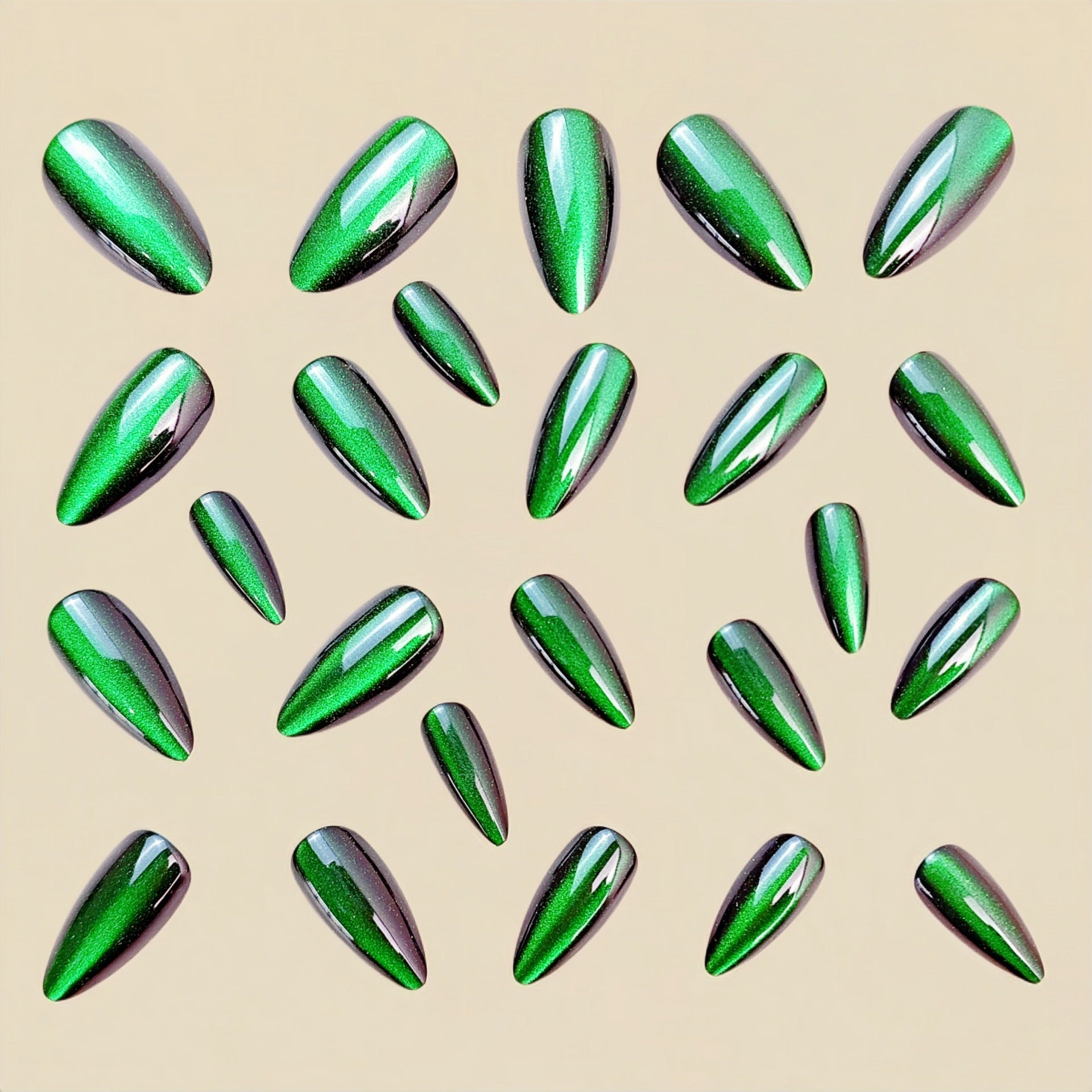 Apply an even layer of glue to both your natural nails and the back of the press on nail. Line it up with your cuticle and apply at a slight downward angle. Press down firmly and hold for 10-20 seconds. Then. file or clip to get your perfect shape.
