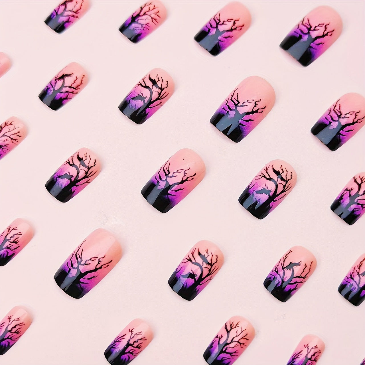 12 Sizes-24 Pcs Press On Nails Dark Violet