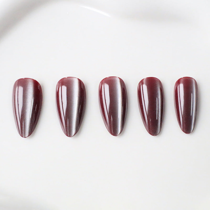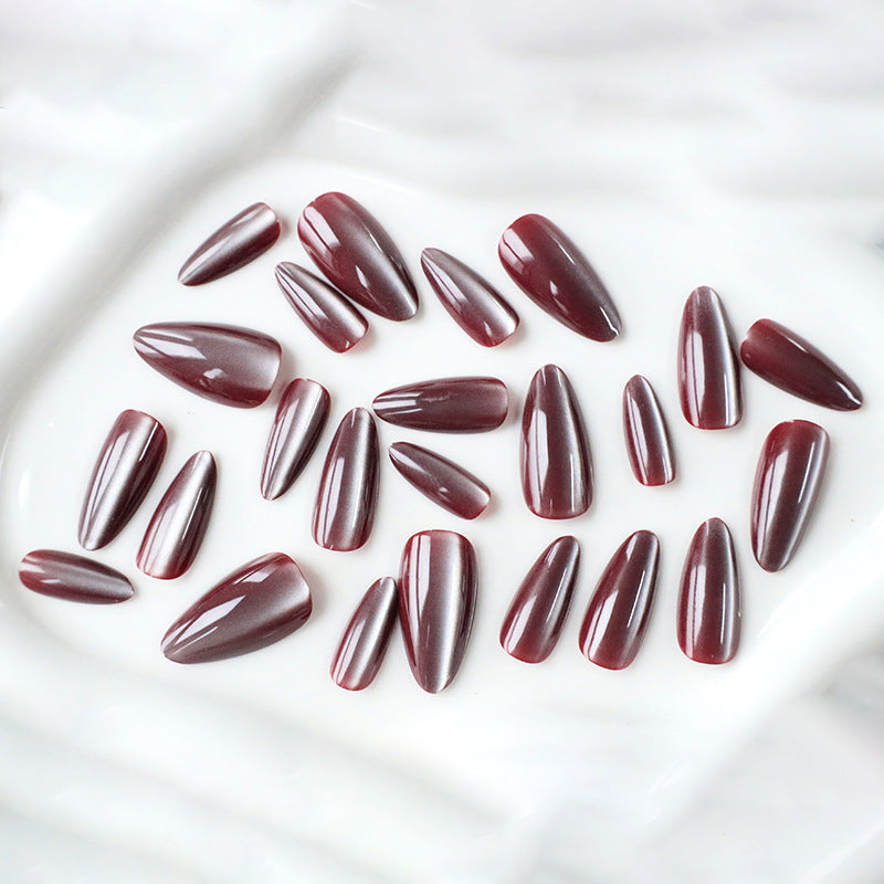 Apply an even layer of glue to both your natural nails and the back of the press on nail. Line it up with your cuticle and apply at a slight downward angle. Press down firmly and hold for 10-20 seconds. Then. file or clip to get your perfect shape.