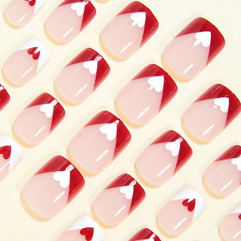 Apply an even layer of glue to both your natural nails and the back of the press on nail. Line it up with your cuticle and apply at a slight downward angle. Press down firmly and hold for 10-20 seconds. Then. file or clip to get your perfect shape.