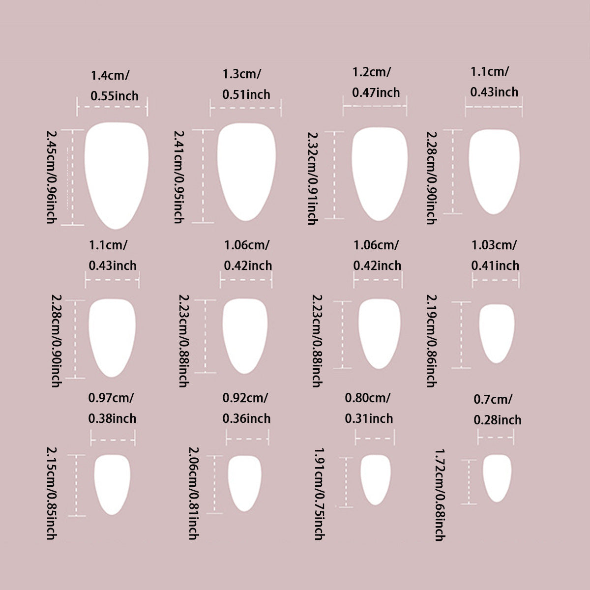 - 12 sizes. 24 nails per box: Each set of 24 press-on nails. available in 12 different sizes. ensures a perfect custom fit. Plus. you'll get everything you need. including nail glue. adhesive tabs. a double-sided nail file. and a cuticle stick.